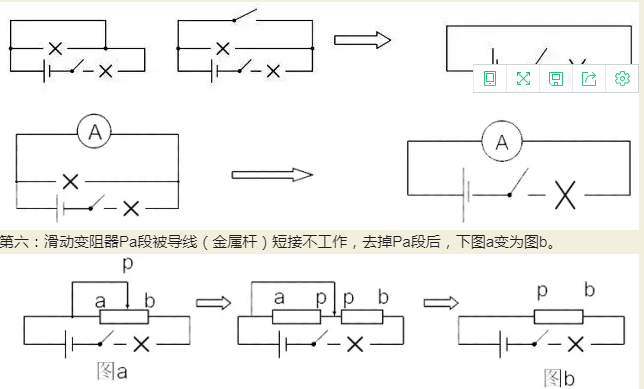 第六:滑動(dòng)變阻器Pa段被導線(xiàn)(金屬桿)短接不工作,去掉Pa段后,下圖a變?yōu)閳Db。