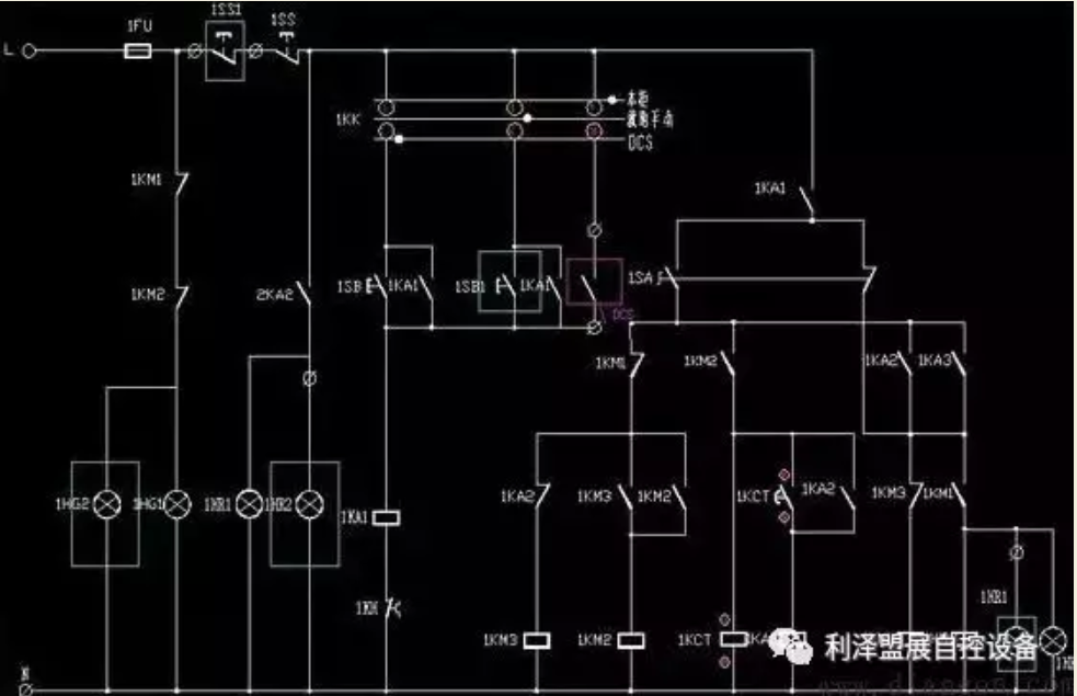 為便于大家理解,下圖是GGD電氣柜、現場(chǎng)操作箱和DCS系統三地控制的電氣二次控制原理圖